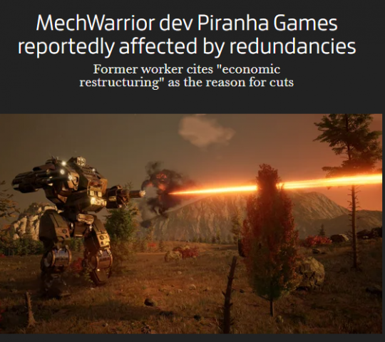 ·Piranha Games的战士上一次人员调整是在2025年1月,当时裁减了38名员工。工作